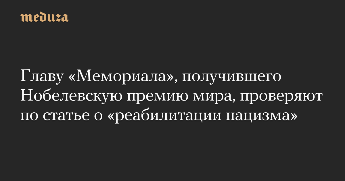 Главу «Мемориала», получившего Нобелевскую премию мира, проверяют по статье о «реабилитации нацизма»