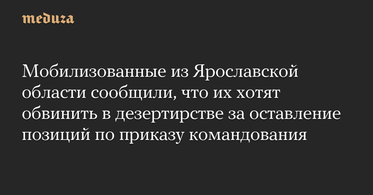 Мобилизованные из Ярославской области сообщили, что их хотят обвинить в дезертирстве за оставление позиций по приказу командования