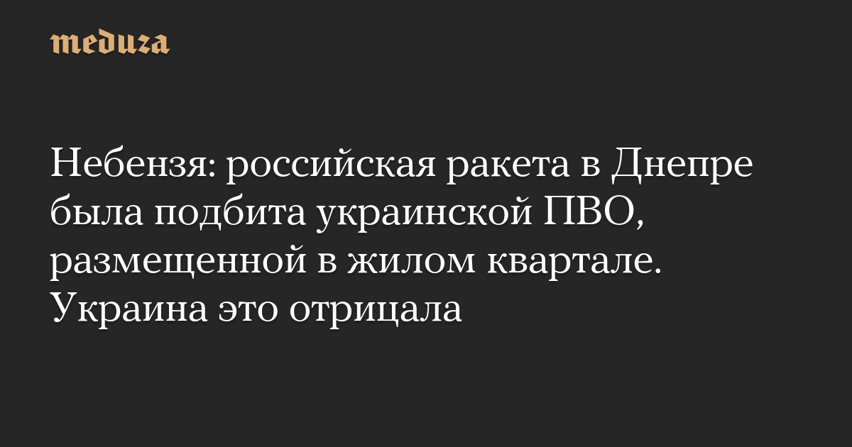 Небензя: российская ракета в Днепре была подбита украинской ПВО, размещенной в жилом квартале. Украина это отрицала