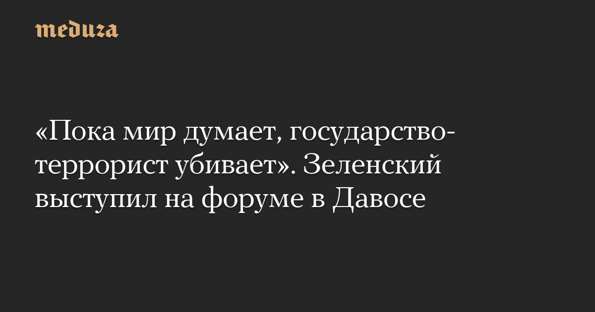 «Пока мир думает, государство-террорист убивает». Зеленский выступил на форуме в Давосе