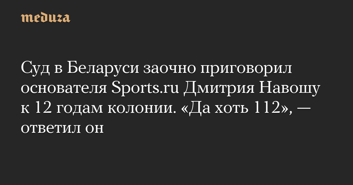 Суд в Беларуси заочно приговорил основателя Sports.ru Дмитрия Навошу к 12 годам колонии. «Да хоть 112», — ответил он