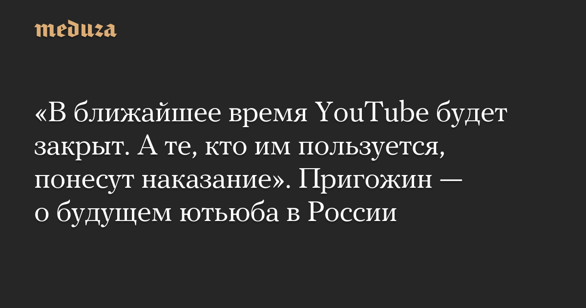 «В ближайшее время YouTube будет закрыт. А те, кто им пользуется, понесут наказание». Пригожин — о будущем ютьюба в России