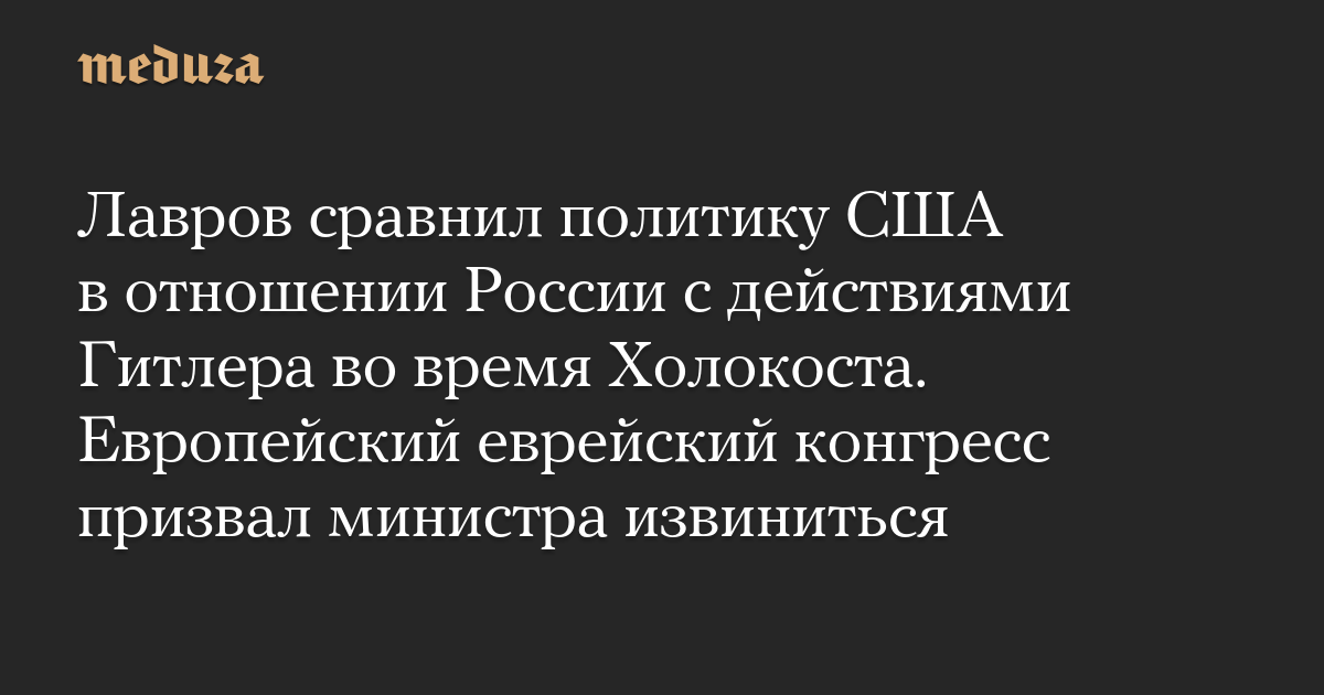 Лавров сравнил политику США в отношении России с действиями Гитлера во время Холокоста. Европейский еврейский конгресс призвал министра извиниться