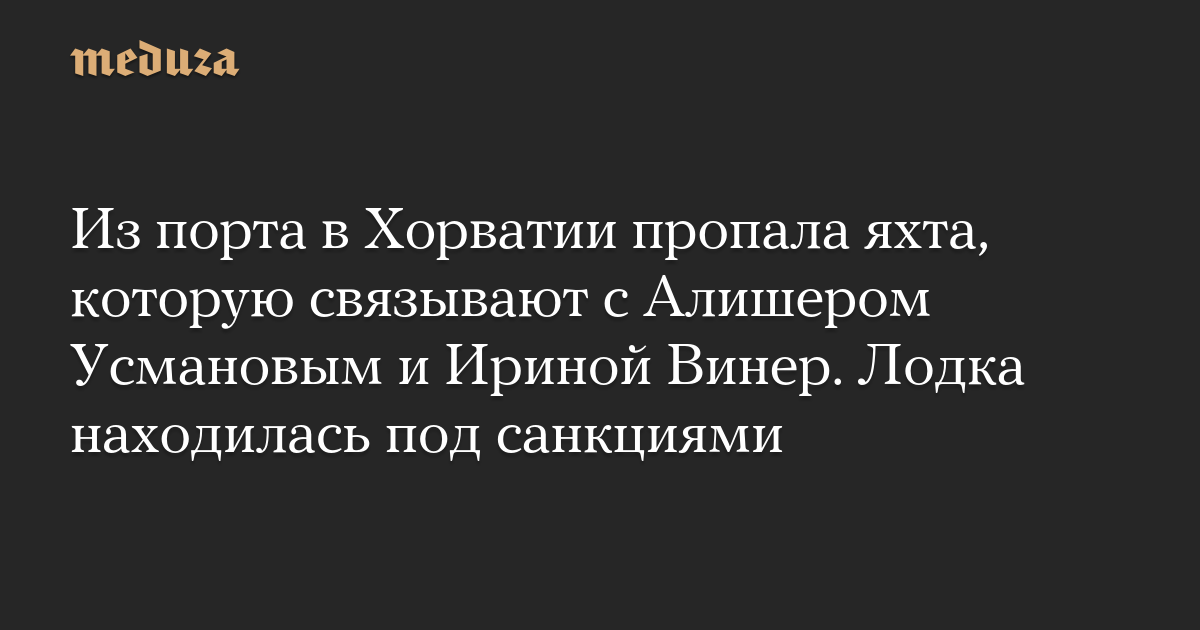 Из порта в Хорватии пропала яхта, которую связывают с Алишером Усмановым и Ириной Винер. Лодка находилась под санкциями