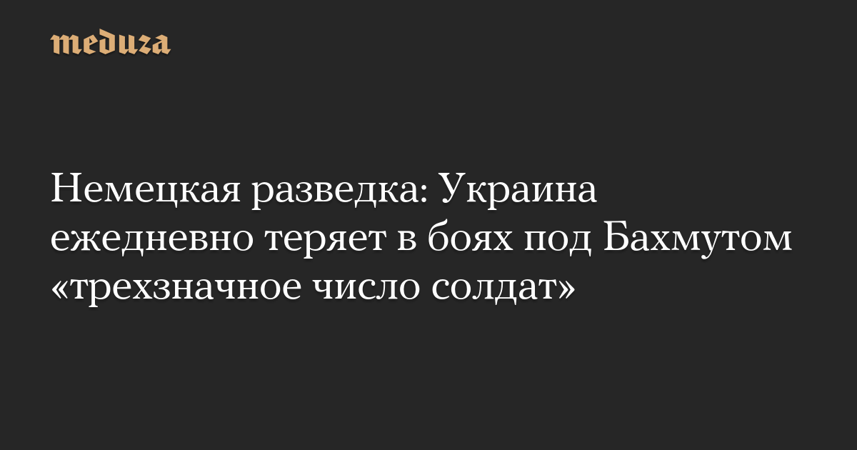 Как утверждает Der Spiegel, представители службы внешней разведки ФРГ проинформировали немецких политиков на секретном совещании в Бундестаге о том, что украинская армия ежедневно теряет в боях под Бахмутом трехзначное число солдат.