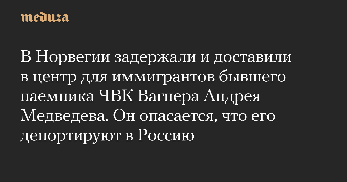 В Норвегии задержали и доставили в центр для иммигрантов бывшего наемника ЧВК Вагнера Андрея Медведева. Он опасается, что его депортируют в Россию