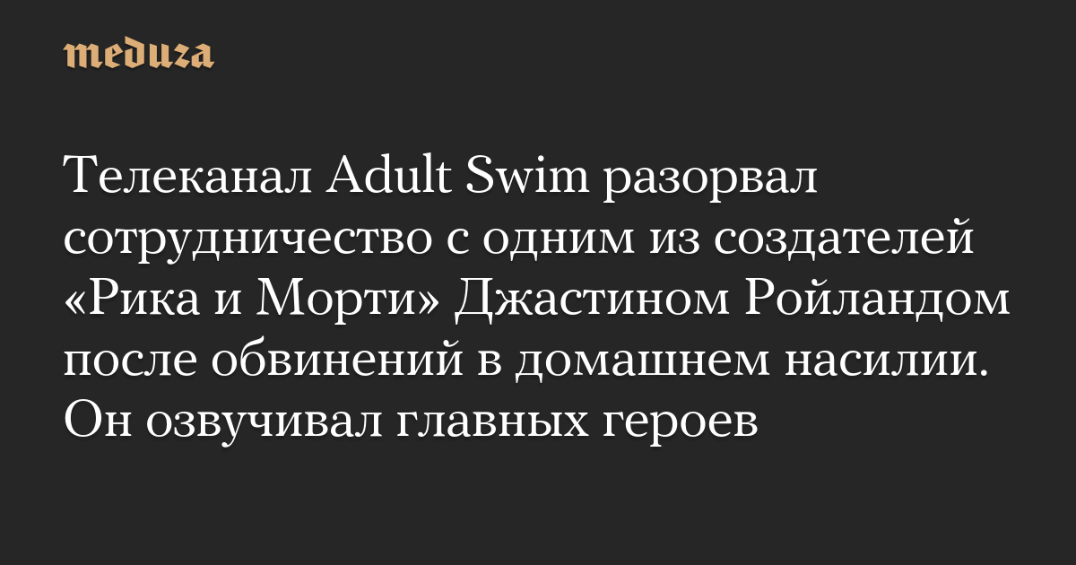 Телеканал Adult Swim разорвал сотрудничество с одним из создателей «Рика и Морти» Джастином Ройландом после обвинений в домашнем насилии. Он озвучивал главных героев