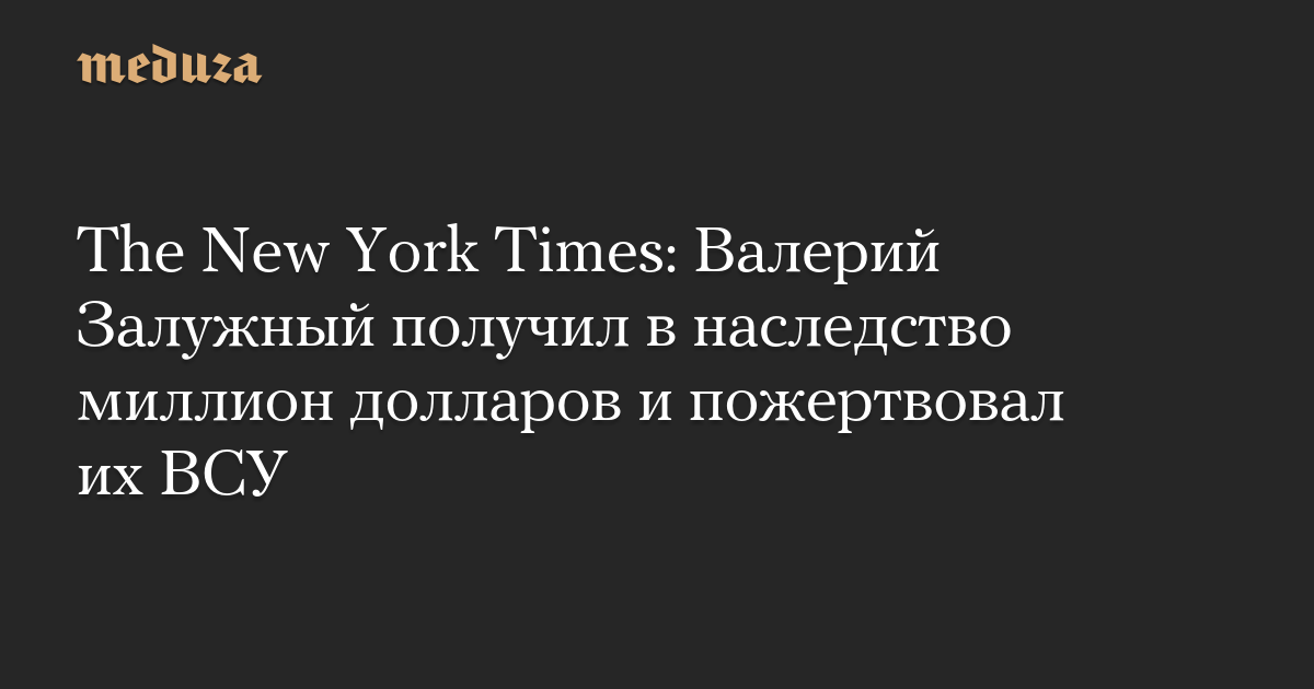 The New York Times: Валерий Залужный получил в наследство миллион долларов и пожертвовал их ВСУ