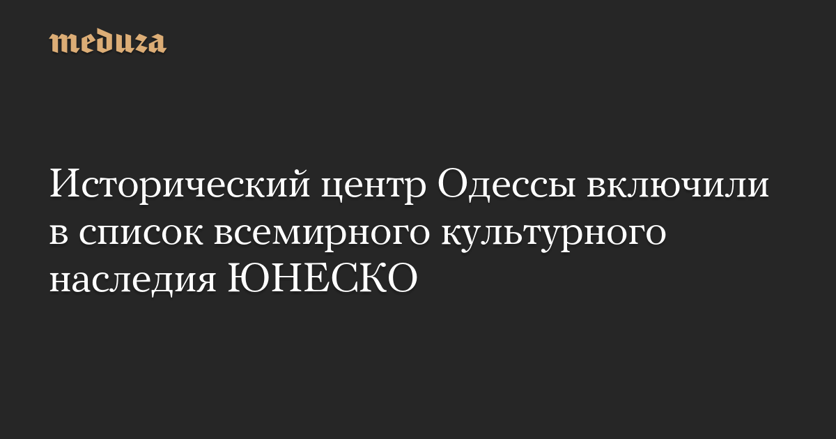 Организация Объединенных Наций по вопросам образования, науки и культуры (ЮНЕСКО) приняла решение включить исторический центр Одессы в список всемирного культурного наследия и список всемирного наследия под угрозой.