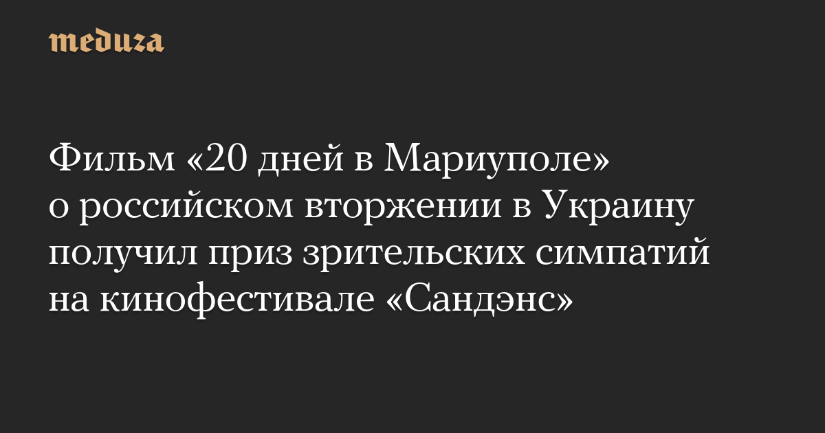 Документальный фильм Мстислава Чернова «20 дней в Мариуполе», рассказывающий о первых днях российского вторжения в Украину, получил приз зрительских симпатий на американском фестивале независимого кино «Сандэнс».