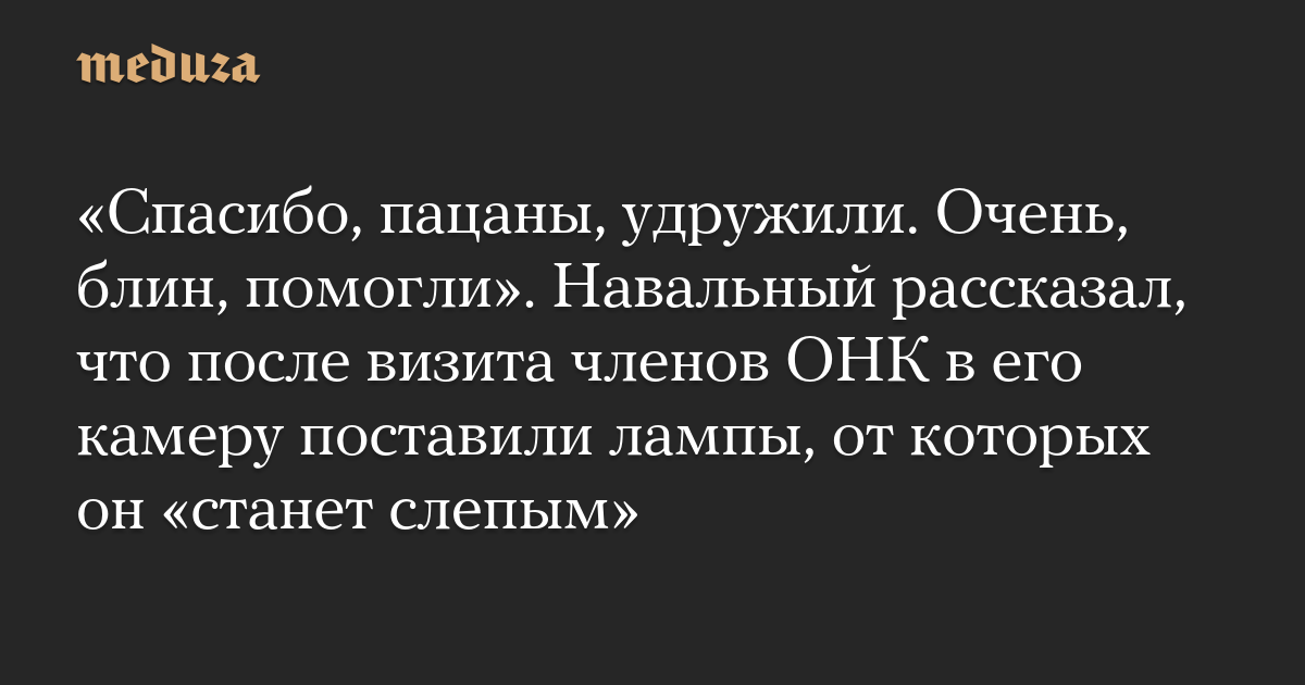 «Спасибо, пацаны, удружили. Очень, блин, помогли». Навальный рассказал, что после визита членов ОНК в его камеру поставили лампы, от которых он «станет слепым»