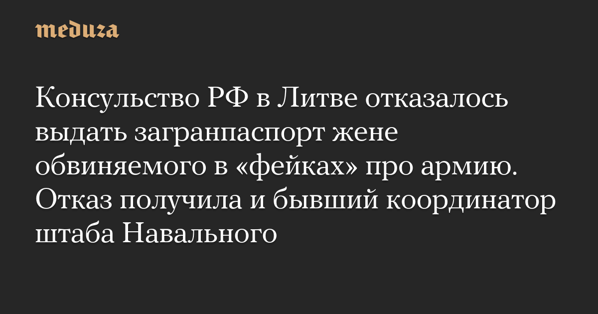 Консульство РФ в Литве отказалось выдать загранпаспорт жене обвиняемого в «фейках» про армию. Отказ получила и бывший координатор штаба Навального