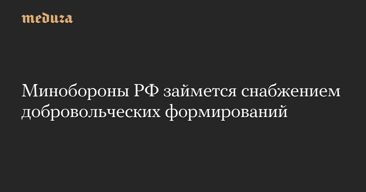 Минобороны РФ возьмет на себя обеспечение добровольческих формирований вооружением, техникой, вещевым имуществом, продовольствием, а также будут оказывать их участникам медицинскую помощь. Об этом сообщается в проекте приказа ведомства, опубликованного на портале правовой информации. Согласно паспорту проекта, общественное обсуждение инициативы продлится с 28 января по 11 февраля.