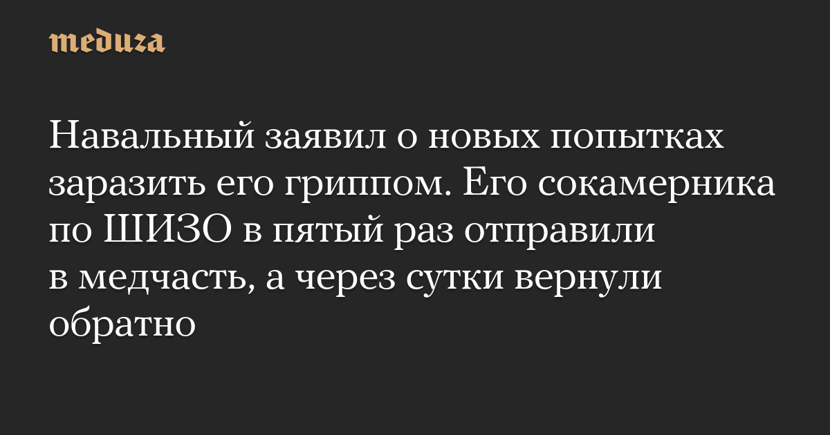 Навальный заявил о новых попытках заразить его гриппом. Его сокамерника по ШИЗО в пятый раз отправили в медчасть, а через сутки вернули обратно