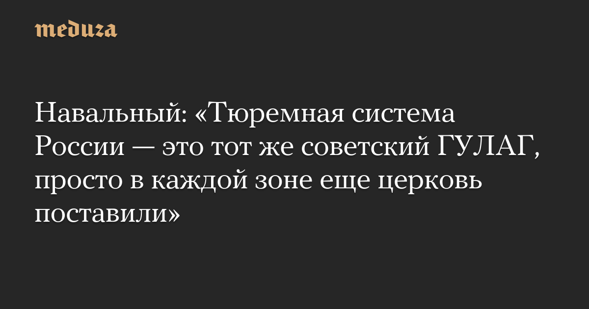 Навальный: «Тюремная система России — это тот же советский ГУЛАГ, просто в каждой зоне еще церковь поставили»