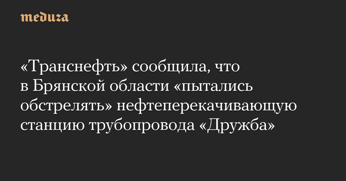 «Транснефть» сообщила, что в Брянской области «пытались обстрелять» нефтеперекачивающую станцию трубопровода «Дружба»