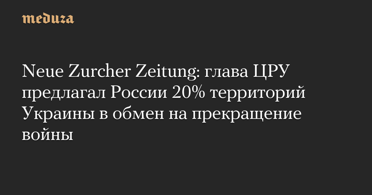 Neue Zurcher Zeitung: глава ЦРУ предлагал России 20% территорий Украины в обмен на прекращение войны