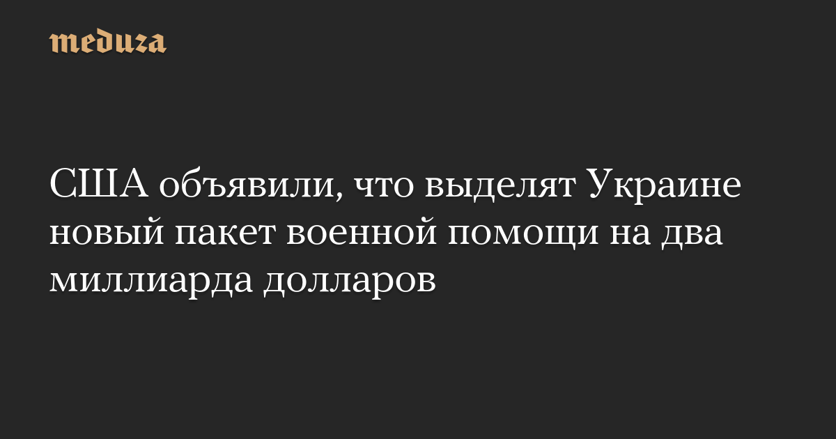 США объявили, что выделят Украине новый пакет военной помощи на два миллиарда долларов