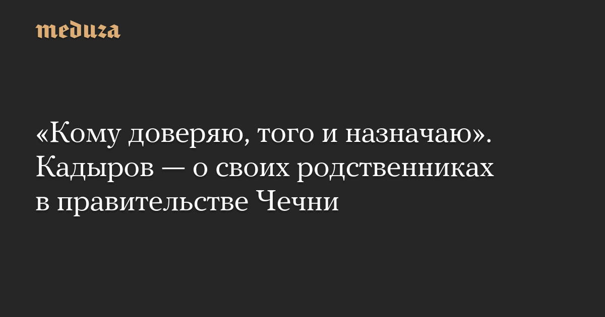 «Компетенция подобных Очкиным и Самонкиным и гроша не стоит. Послушать их страшилки, так вся республика развалится из-за того, что среди сотни тысяч служащих в регионе несколько моих близких родственников. Не смешите меня, — написал глава Чечни в своем телеграм-канале. — С моих родственников в любом учреждении и на любой должности спрос в десятки раз больше, потому что им нужно доказывать, что они работают не благодаря мне, а вопреки. Кому доверяю, того и назначаю».