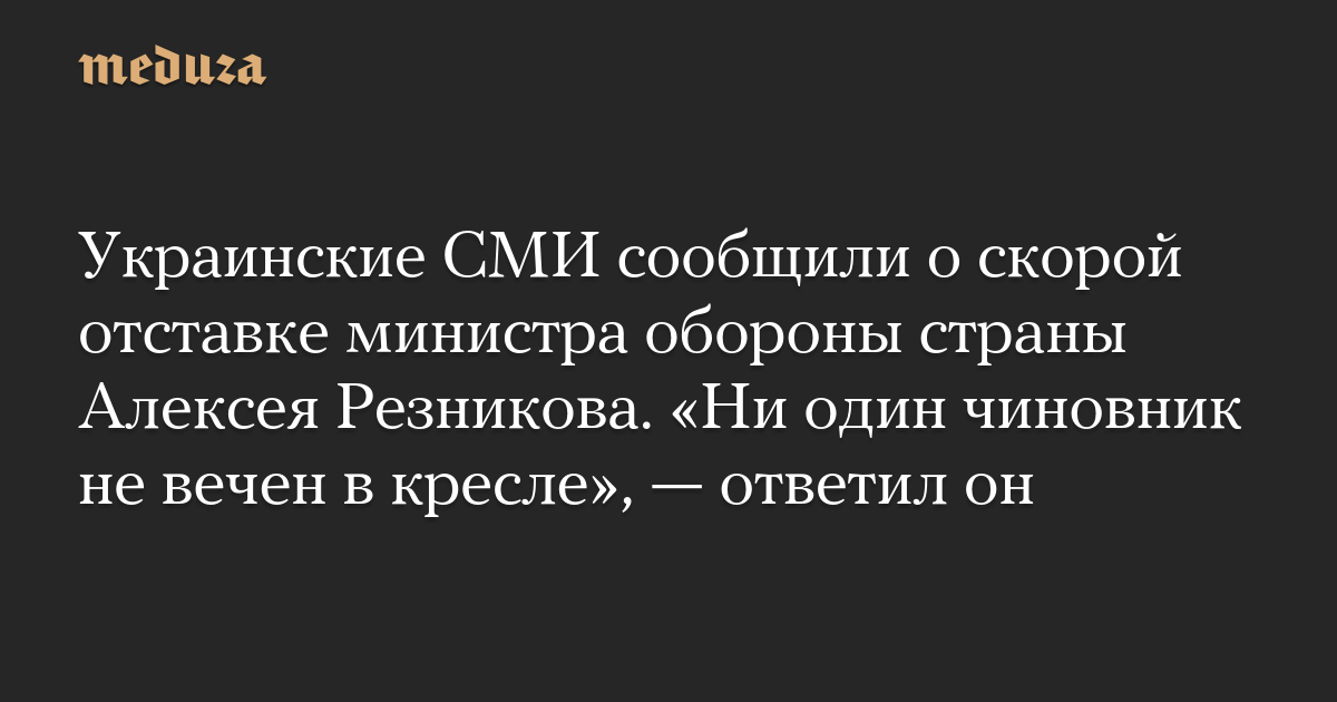 Украинские СМИ сообщили о скорой отставке министра обороны страны Алексея Резникова. «Ни один чиновник не вечен в кресле», — ответил он