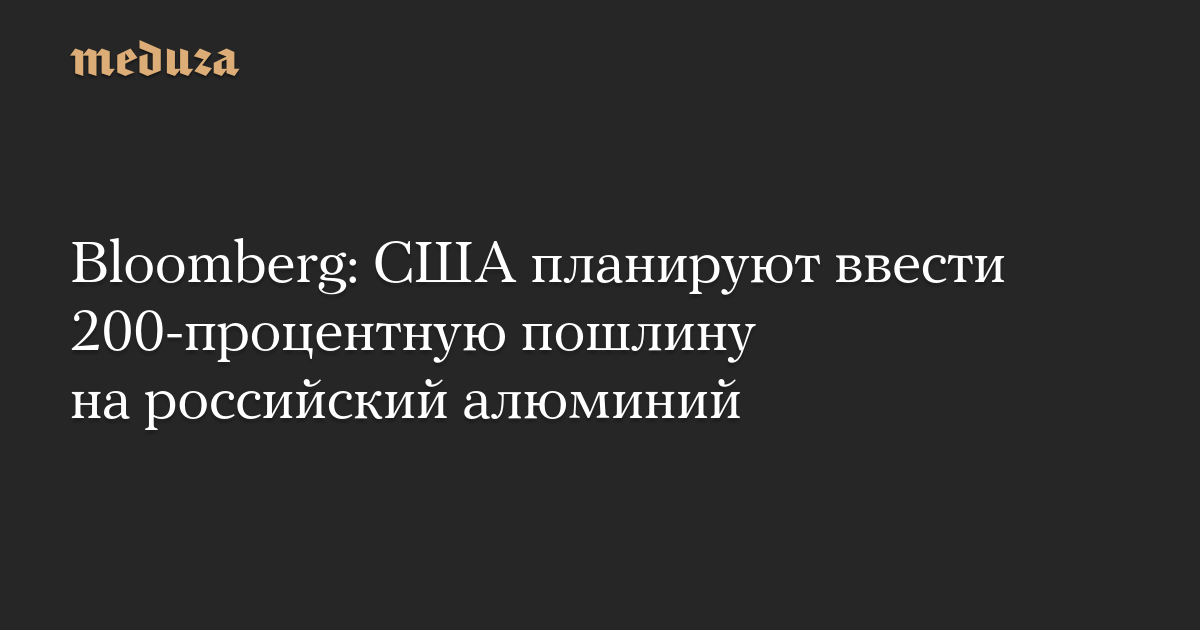 Bloomberg: США планируют ввести 200-процентную пошлину на российский алюминий