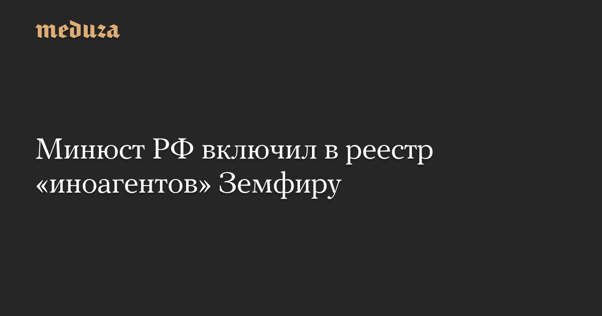 Минюст РФ включил в реестр «иноагентов» Земфиру