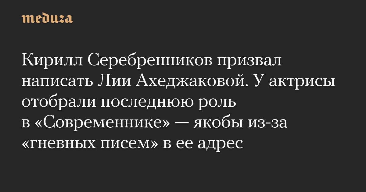 Кирилл Серебренников призвал написать Лии Ахеджаковой. У актрисы отобрали последнюю роль в «Современнике» — якобы из-за «гневных писем» в ее адрес
