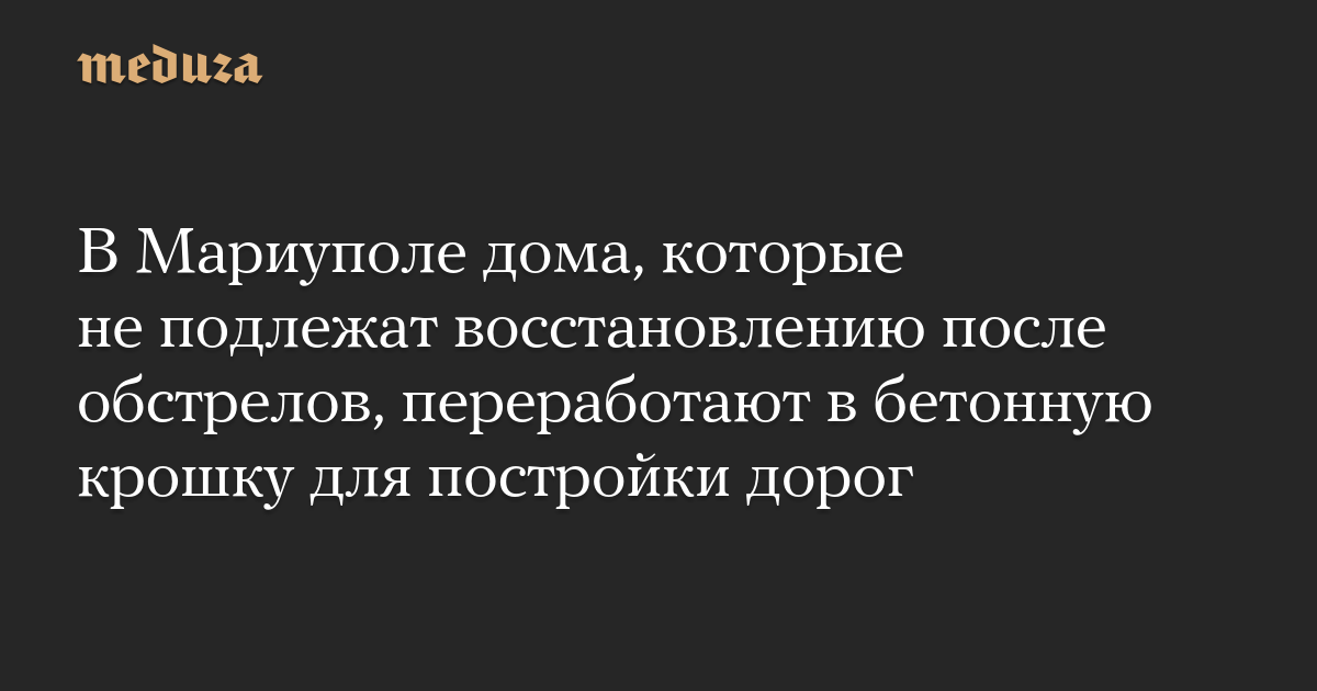 Снесенные здания в захваченном Россией украинском городе Мариуполь начали перерабатывать в бетонную крошку, которую применят при строительстве дорог. Об этом РИА Новости сообщил представитель оккупационных властей города, директор муниципального предприятия «Коммунальник» Дмитрий Хаджинов.