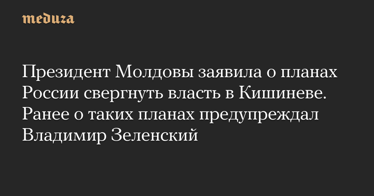 Президент Молдовы заявила о планах России свергнуть власть в Кишиневе. Ранее о таких планах предупреждал Владимир Зеленский
