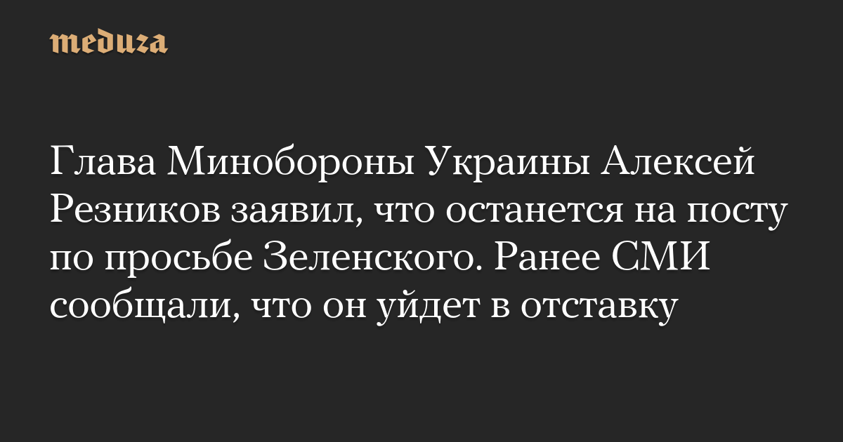Глава Минобороны Украины Алексей Резников заявил, что останется на посту по просьбе Зеленского. Ранее СМИ сообщали, что он уйдет в отставку
