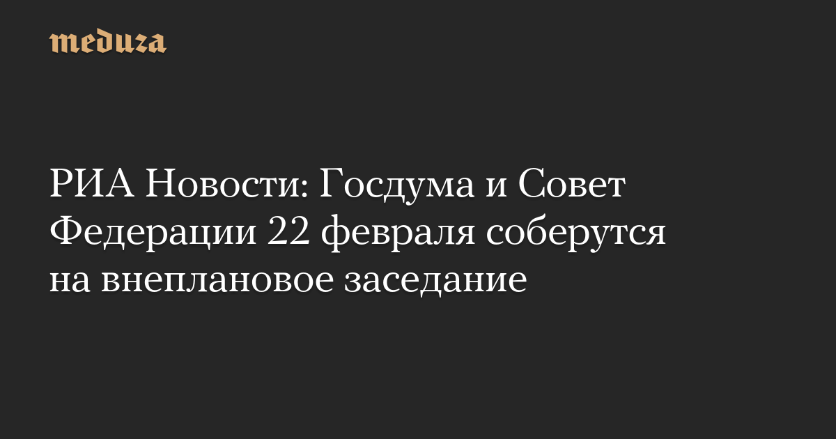 РИА Новости: Госдума и Совет Федерации 22 февраля соберутся на внеплановое заседание
