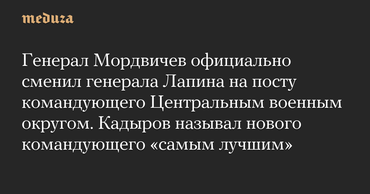 Генерал Мордвичев официально сменил генерала Лапина на посту командующего Центральным военным округом. Кадыров называл нового командующего «самым лучшим»