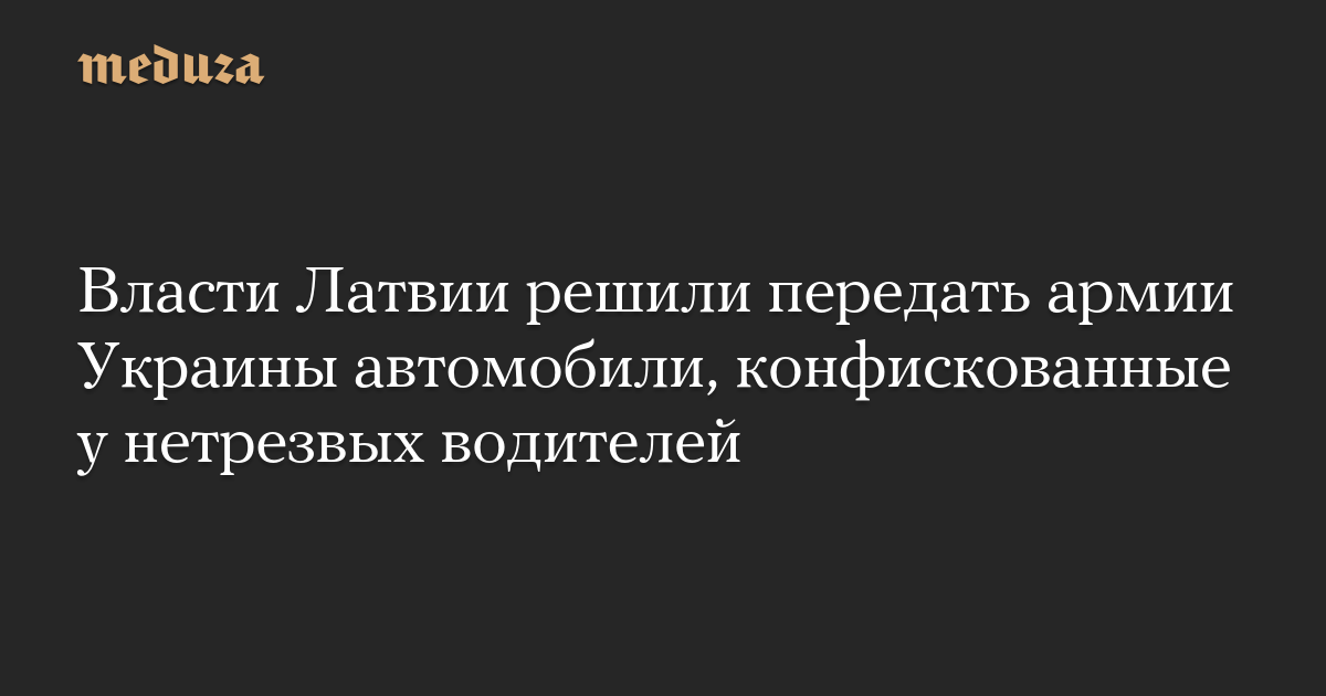 «Мы можем реализовать конфискованные у пьяных водителей транспортные средства, продав их, сдав на переработку или разобрав на запчасти, однако мы видим, что в нынешних условиях они были бы полезной поддержкой для народа Украины», — заявил председатель комиссии сейма по обороне Раймонд Бергманис.