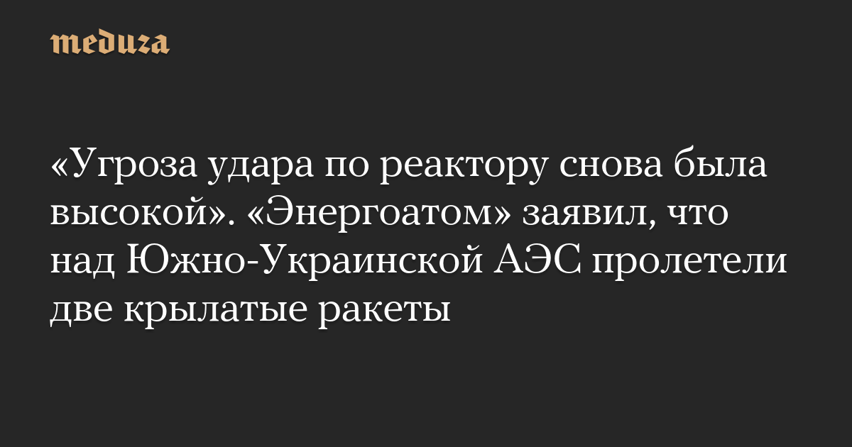 «Угроза удара по реактору снова была высокой». «Энергоатом» заявил, что над Южно-Украинской АЭС пролетели две крылатые ракеты