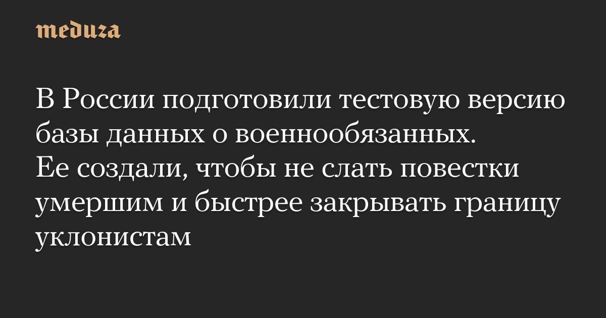 В России подготовили тестовую версию базы данных о военнообязанных. Ее создали, чтобы не слать повестки умершим и быстрее закрывать границу уклонистам