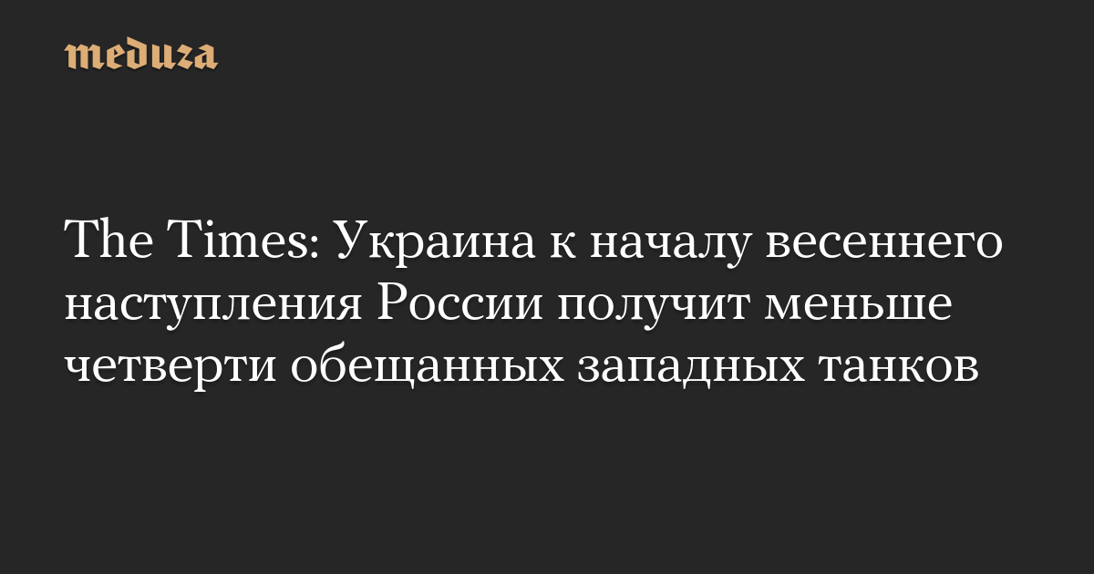 К началу прогнозируемого весеннего наступления российской армии Украина получит менее четверти современных боевых танков, которые пообещали ей западные страны. Об этом пишет британская газета The Times.