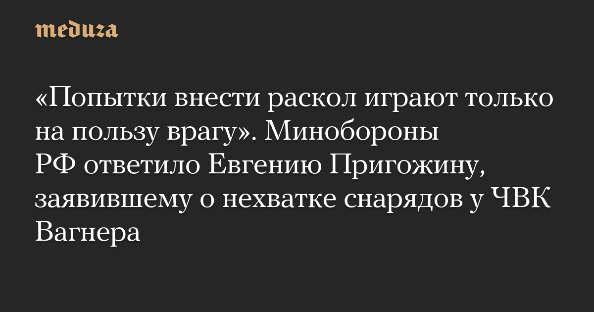 «Попытки внести раскол играют только на пользу врагу». Минобороны РФ ответило Евгению Пригожину, заявившему о нехватке снарядов у ЧВК Вагнера