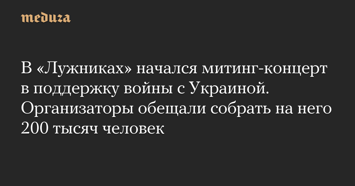 Источники РИА и ТАСС ранее сообщали, что Кремль рассчитывает собрать на концерте в «Лужниках» 200 тысяч человек. Ранее в телеграм-каналах и ВК появились объявления по набору массовки для участия в митинг-концерте в «Лужниках». Зрителям пообещали заплатить по 500 рублей. Перед концертом зрителям запретили общаться со СМИ и говорить о том, что им пообещали деньги за участие, пишут «Верстка» и «Осторожно, новости».