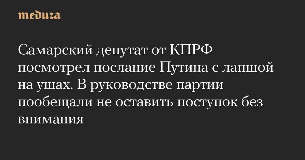Самарский депутат от КПРФ посмотрел послание Путина с лапшой на ушах. В руководстве партии пообещали не оставить поступок без внимания