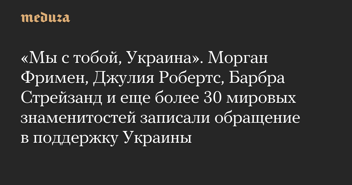 «Мы с тобой, Украина». Морган Фримен, Джулия Робертс, Барбра Стрейзанд и еще более 30 мировых знаменитостей записали обращение в поддержку Украины