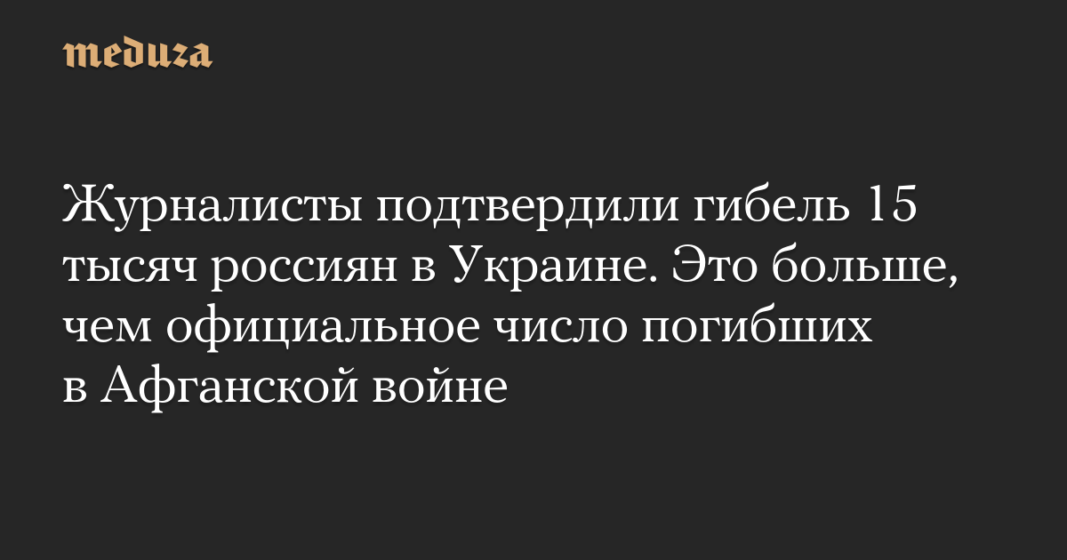 Журналисты подтвердили гибель 15 тысяч россиян в Украине. Это больше, чем официальное число погибших в Афганской войне