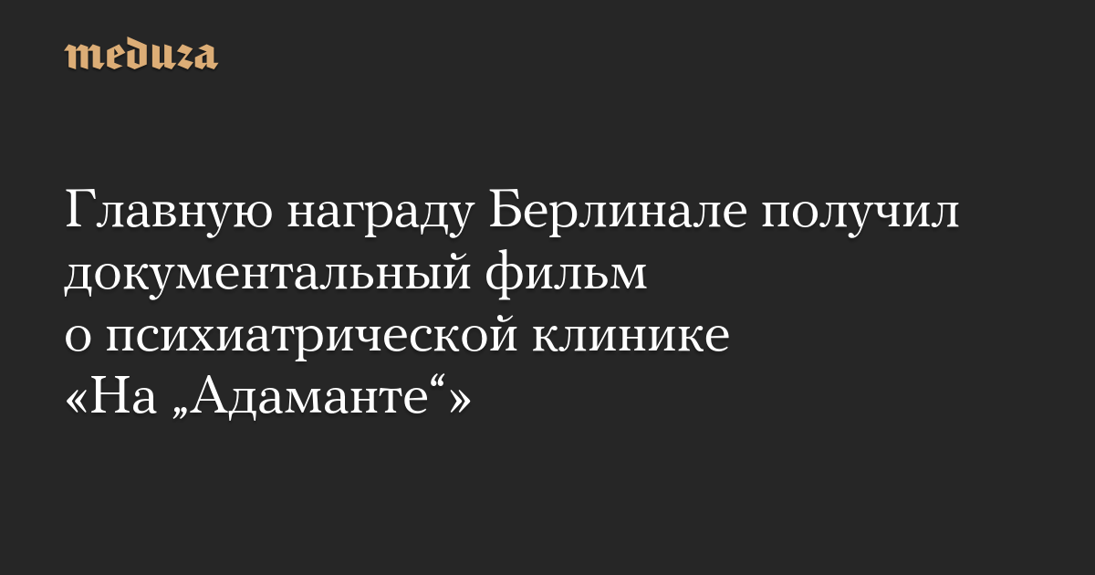 Главную награду Берлинале получил документальный фильм о психиатрической клинике «На „Адаманте“»