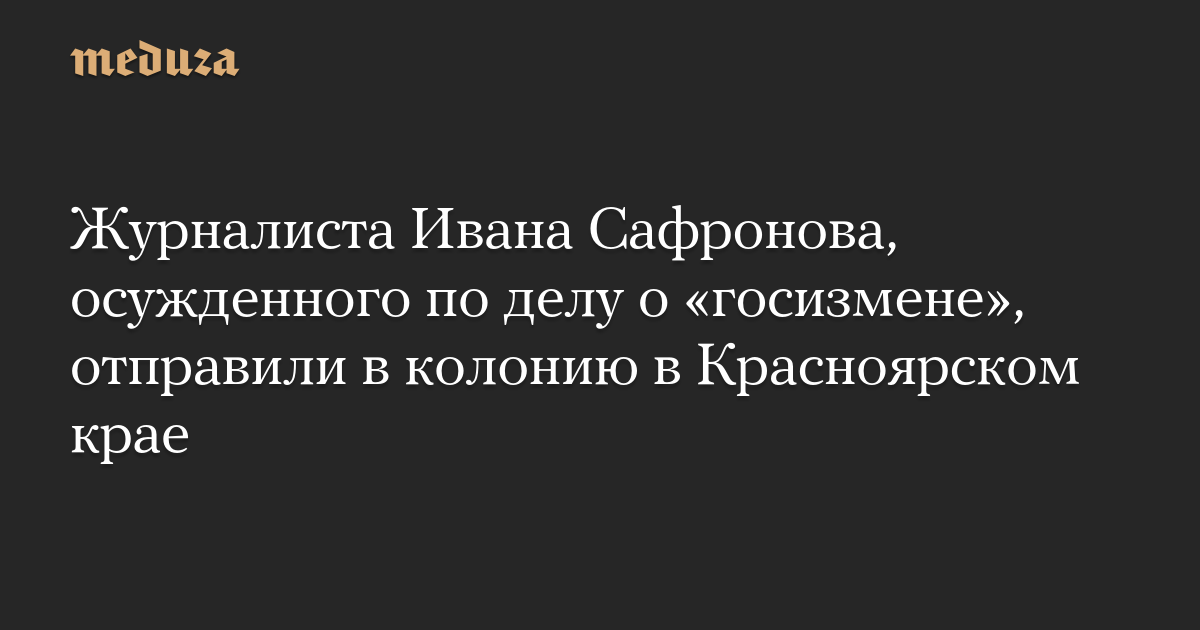 Журналист Иван Сафронов, осужденный по обвинению в государственной измене, будет отбывать заключение в исправительной колонии № 7 в Красноярском крае. Об этом он сам сообщил в письме после этапирования, которое опубликовано в телеграм-канале его сторонников.