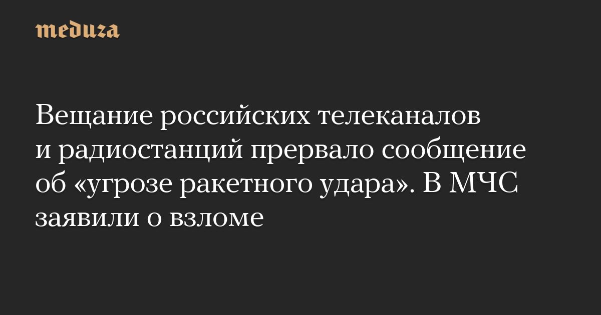 Вещание российских телеканалов и радиостанций прервало сообщение об «угрозе ракетного удара». В МЧС заявили о взломе