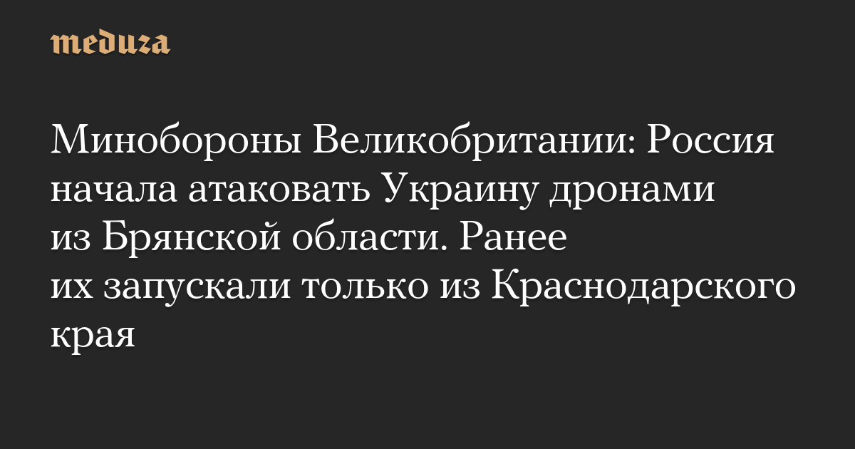 Минобороны Великобритании: Россия начала атаковать Украину дронами из Брянской области. Ранее их запускали только из Краснодарского края