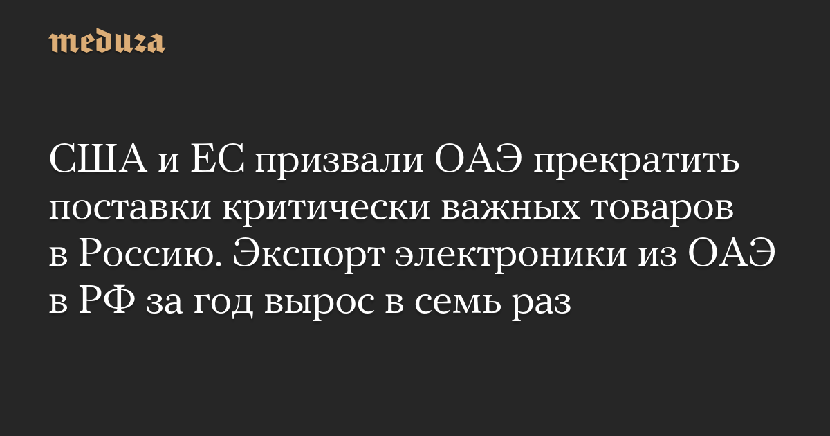 США и ЕС призвали ОАЭ прекратить поставки критически важных товаров в Россию. Экспорт электроники из ОАЭ в РФ за год вырос в семь раз