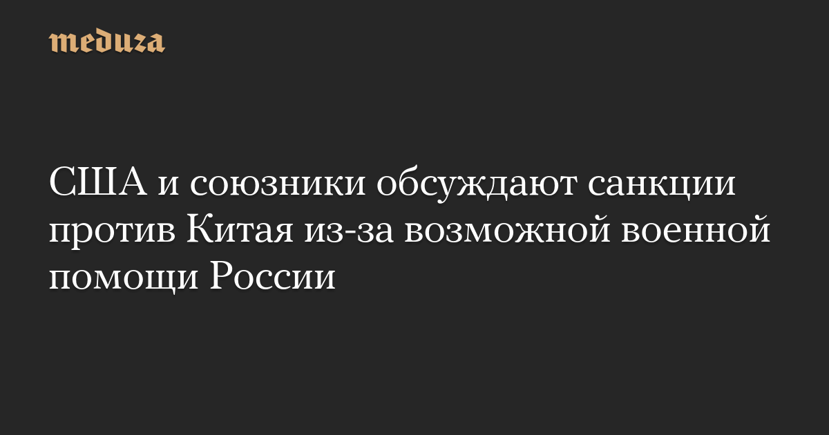 США и союзники обсуждают санкции против Китая из-за возможной военной помощи России