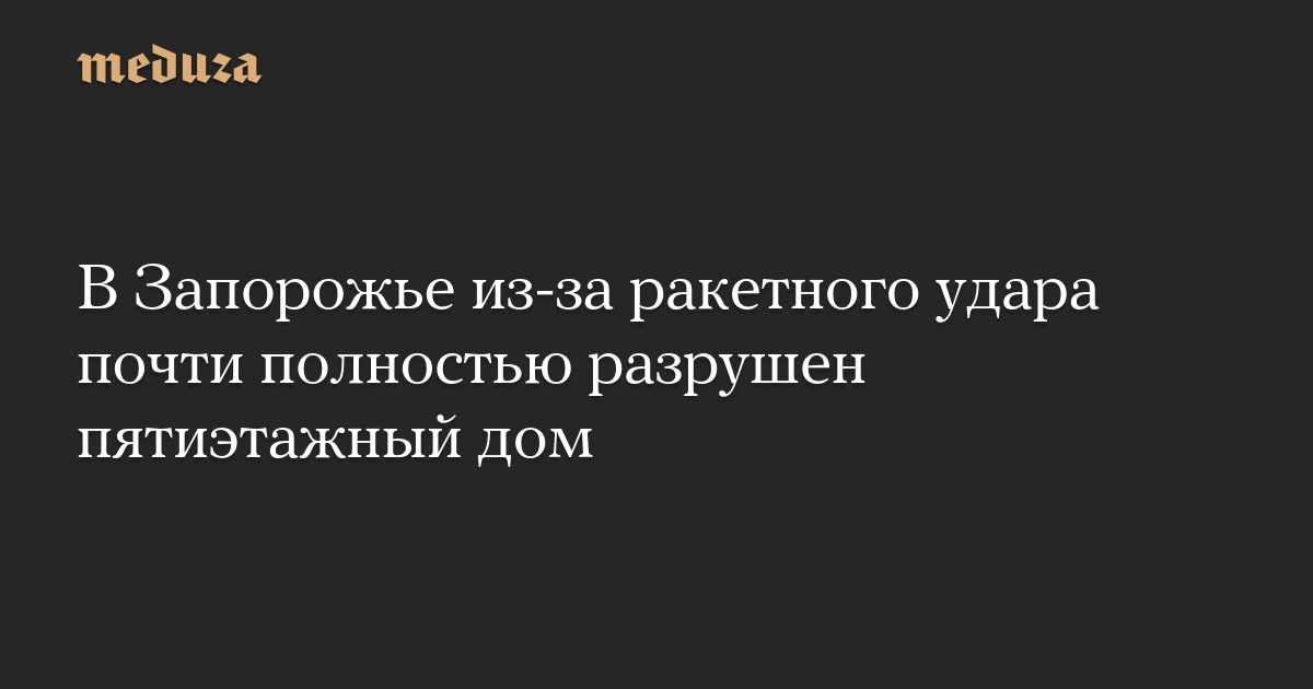 В Запорожье из-за ракетного удара почти полностью разрушен пятиэтажный дом