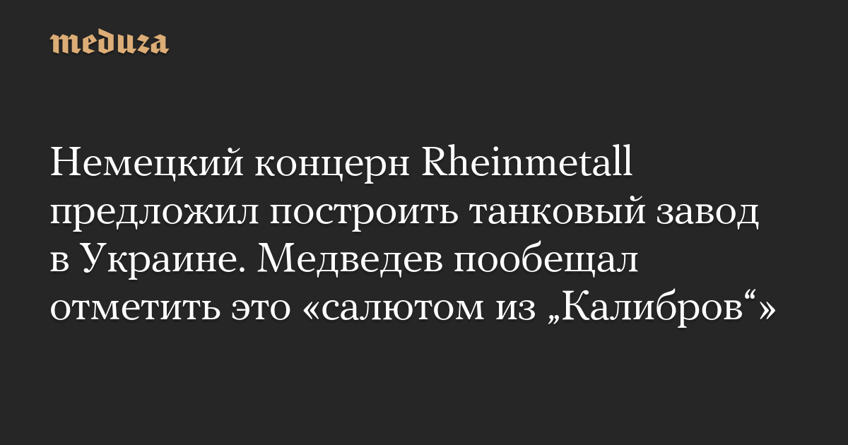 Немецкий концерн Rheinmetall предложил построить танковый завод в Украине. Медведев пообещал отметить это «салютом из „Калибров“»