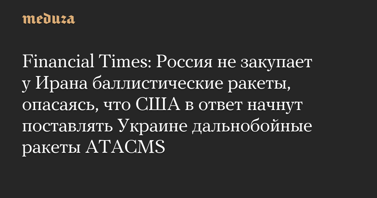 Financial Times: Россия не закупает у Ирана баллистические ракеты, опасаясь, что США в ответ начнут поставлять Украине дальнобойные ракеты ATACMS